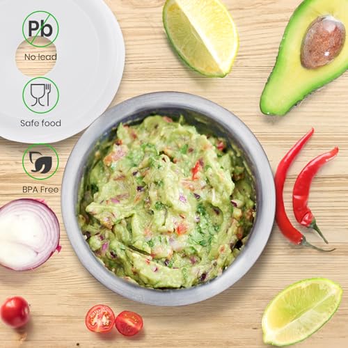 - DURABLE AND STABLE: Made of solid metal, the pestle feels substantial in your hand and the mortar sits securely on your kitchen counter. Padding on the bottom makes it stay put even more.