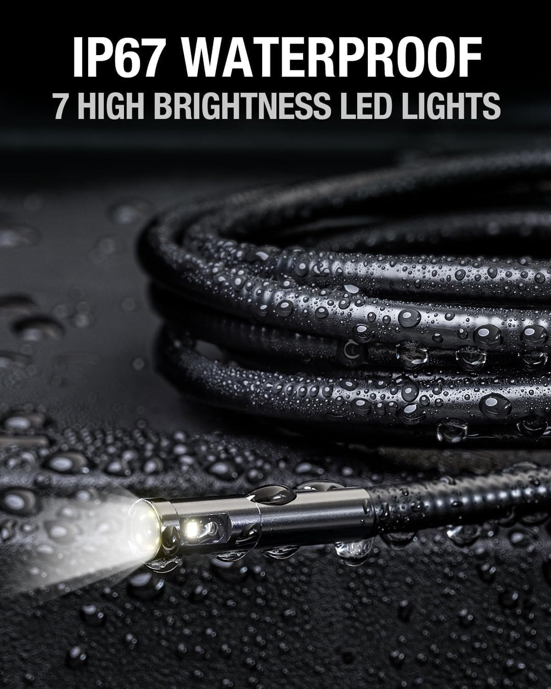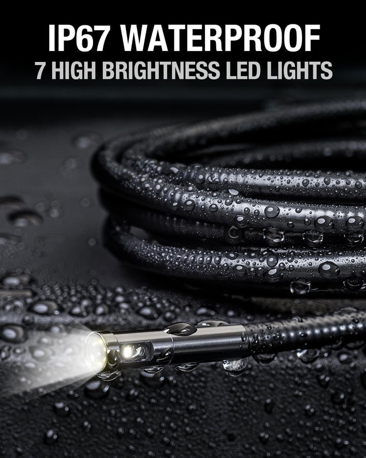 - IP67 Waterproof Flexible CableWith an 8mm camera, the flexible cable of this endoscope camera can easily pass through hard-to-reach areas. The endoscope camera cable holds its shape well, and the IP67 waterproof design makes it perfect to operate 3.28ft (1 meter) underwater.