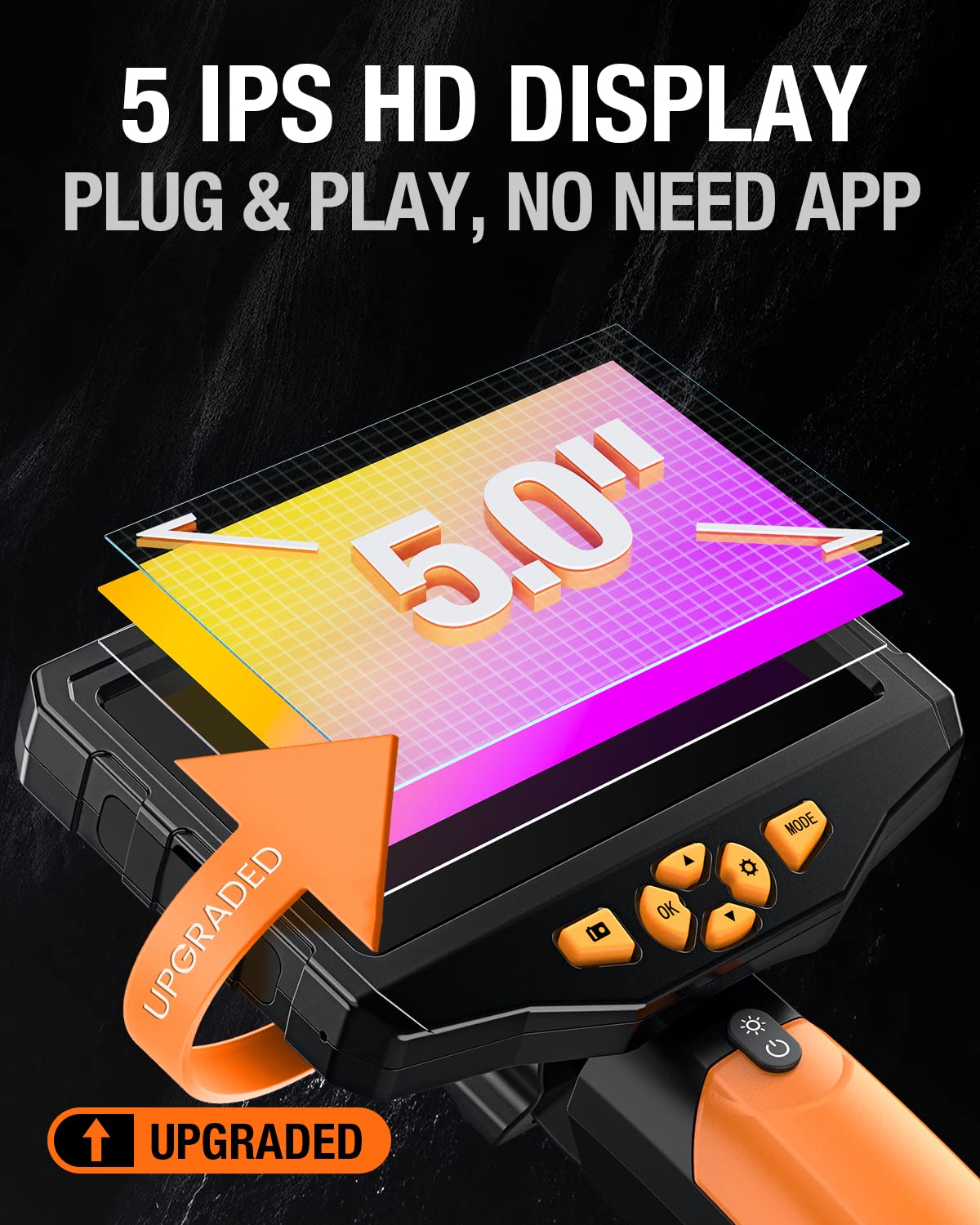 - Original Borescopes – Inspection Camera, Dual Lens Endoscope Camera with Light 5 IPS Screen Digital Industrial Borescope,1080P Endoscope Waterproof Flexible Probe Borescope Camera with Light(16.5FT) by Teslong