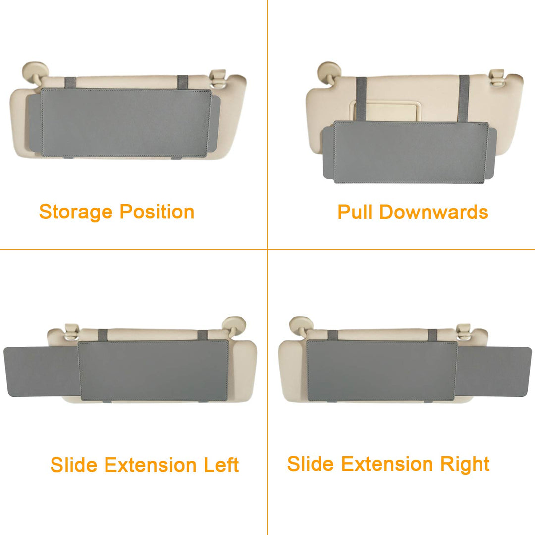 - Anti-glare sun visor extender doesn't require any tools to install.