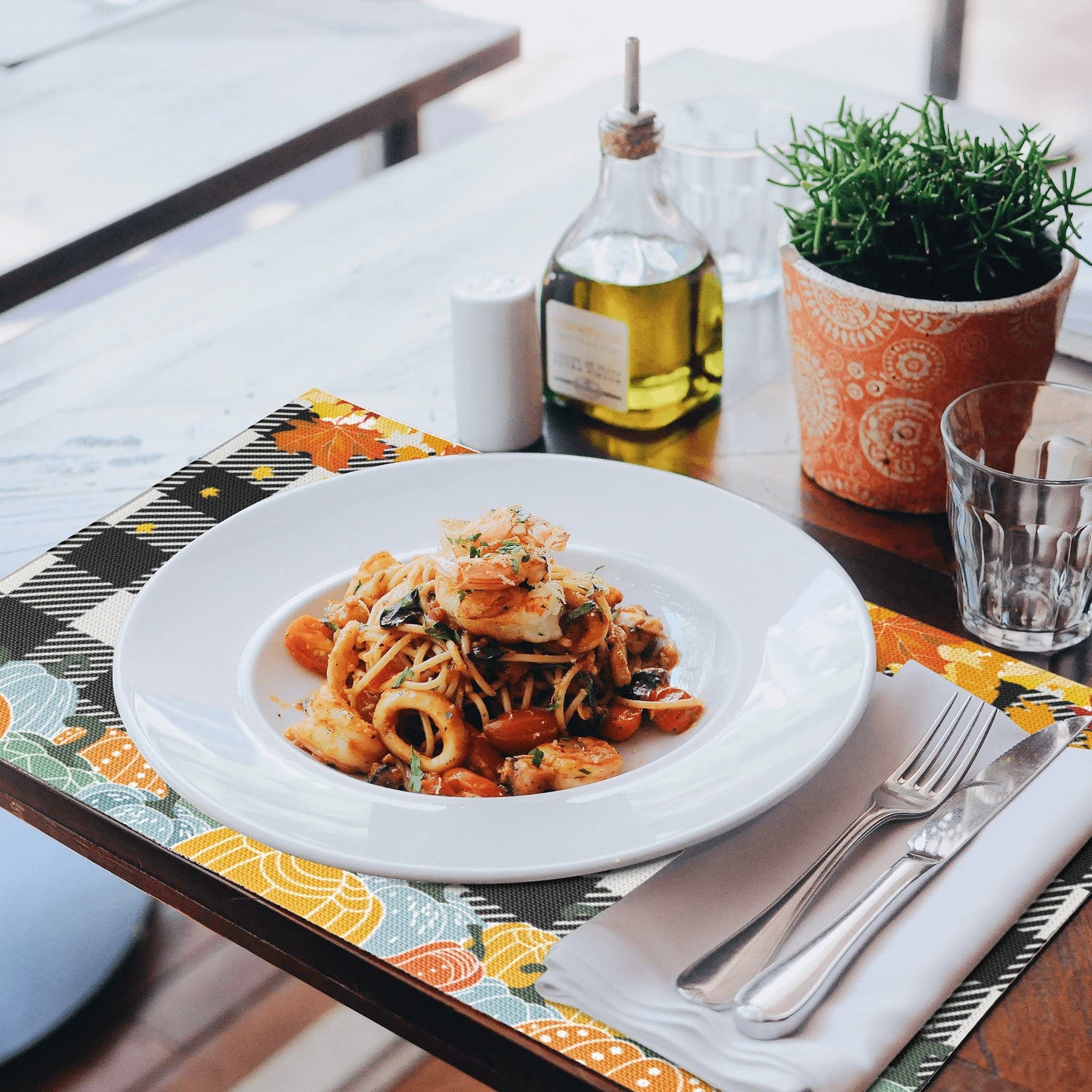 - Original Place Mats – Thanksgiving Placemats Set of 4 Fall Pumpkin Maple Leaves Buffalo Plaid PVC Placemats for Dining Table Waterproof Table Mats Holiday Table Decorations 12 × 18 inch by AGAXOZW