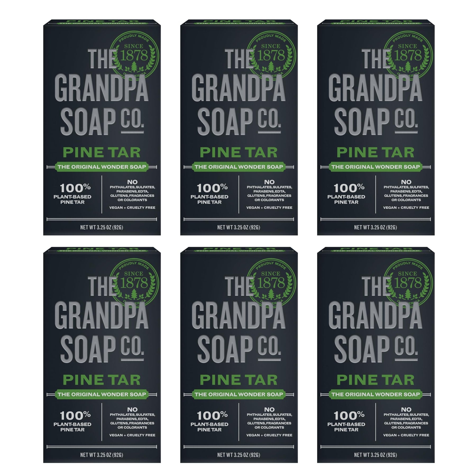 - Original Soaps – Pine Tar Bar Soap for Men- Made With 100% Plant-Based Pine Tar Oil, 3 in 1 Cleanser Deodorizer and Moisturizer, Dermatologist Tested, Safe for Sensitive Skin, 3.25 Oz, 6 Pack by The Grandpa Soap Company