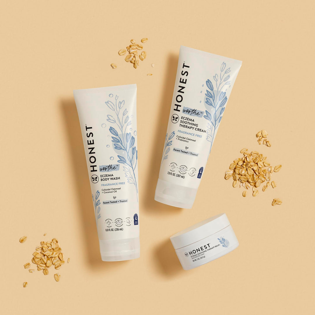 - Original Eczema, Psoriasis & Rosacea Care – Eczema Soothing Therapy Balm + Skin Protectant, Naturally Derived, Gentle for Baby, Prebiotics, Colloidal Oatmeal, 3 oz by The Honest Company