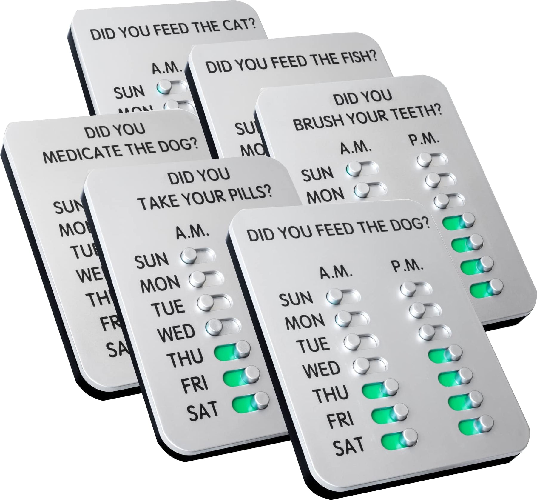 - A Convenient Reminder: This feeding routine chart has a click-in-place system to indicate if your pet has been fed. It features a slider goal tracker that you can shift to green if the dog has eaten or leave on silver if not.