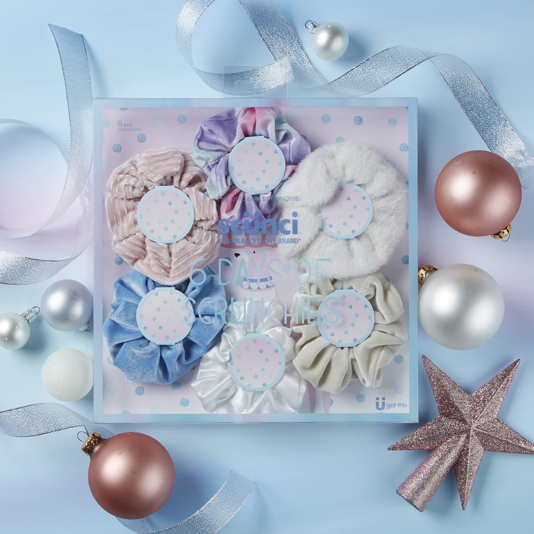 - Original Craft Materials – The Original Scrunchie® Girls Fashion Gift Set Includes 6 Unique Designs: Pastel Rainbow Velvet, Cream Velour, Pink Velvet, White Faux Fur, Blue Velour, White Satin in Presentation Box by Scünci