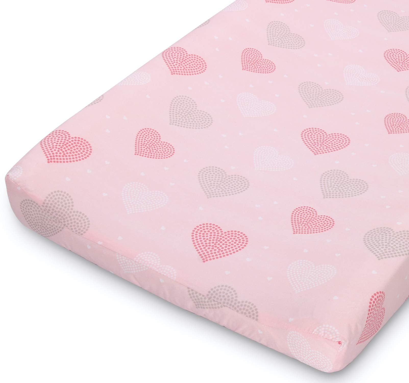 - FUN & COLORFUL PRINTS: This elephant and hearts themed 2 pack change pad cover set in white, grey, and shades of pink are the perfect starter for any baby girl and coordinate perfectly with our matching crib sheets for an all around elephant themed nursery.