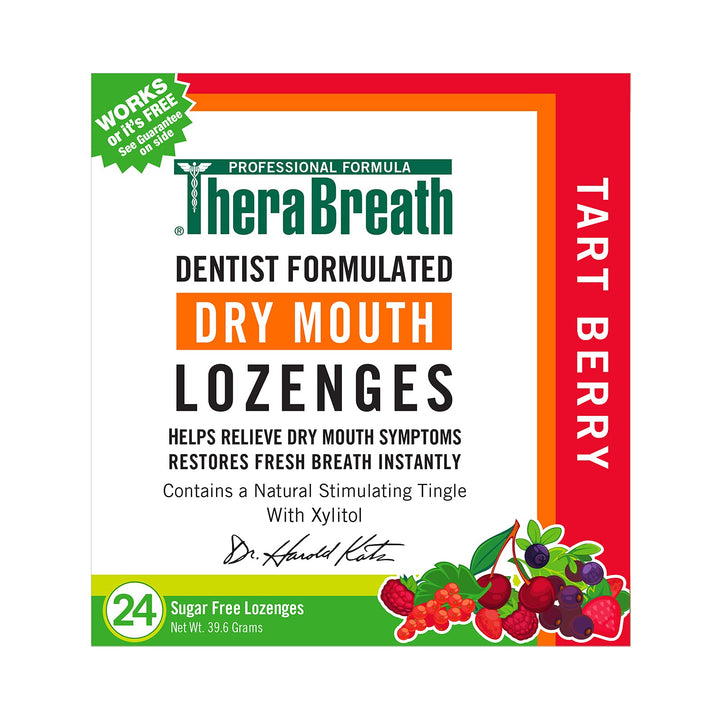 - Original Dry Mouth Relief – Dry Mouth Lozenges with ZINC, Tart Berry Flavor, 24 Lozenges by TheraBreath