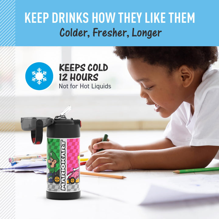 - Original Thermoses – FUNTAINER Water Bottle with Straw - 12 Ounce, Super Mario Brothers - Kids Stainless Steel Vacuum Insulated Water Bottle with Lid(Style May Vary) by THERMOS