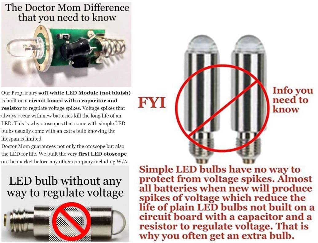 - Original Otoscopes – Third Generation Dr Mom Slimline Stainless LED Pocket Otoscope with Soft White Natural Hue Light Spectrum in Hard Travel Case Includes Lighted Ear Wax curettes by Doctor Mom Otoscope