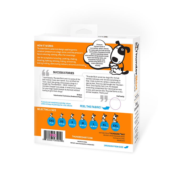 - Consider combining the ThunderShirt with ThunderEase Spray & ThunderWunders Calming Chews to create your calming dream team!