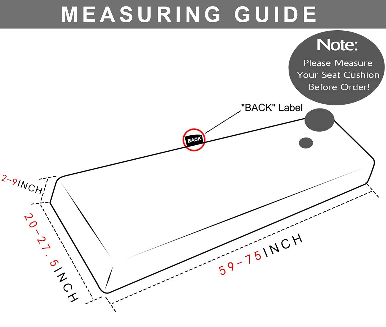 - MEASUREMENT & PACKAGE: 1 package include 1 cushion cover. Each slipcover fits sofa cushion length between 59-75 inches, width between 20-27.5 inches, thickness between 2-9 inches. More details please refer to the measurement guide in photo and measure your cushion before purchasing.
