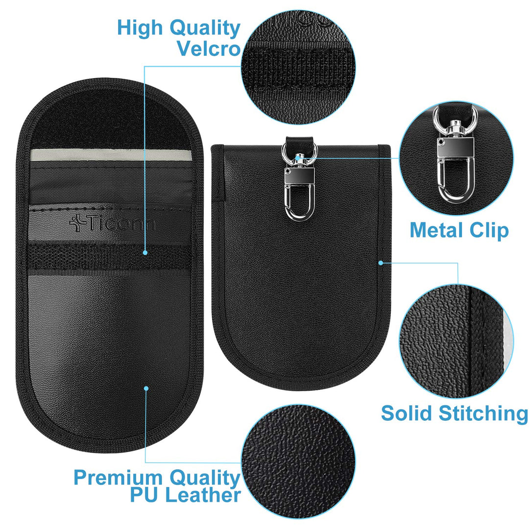- Original Accessories – 2PK Faraday Bag for Key Fob, 3.5''X5.0'' Faraday Cage Protector, Car RFID Signal Blocking, Anti-Theft Pouch Anti-Hacking Case Blocker (Black PU) by TICONN