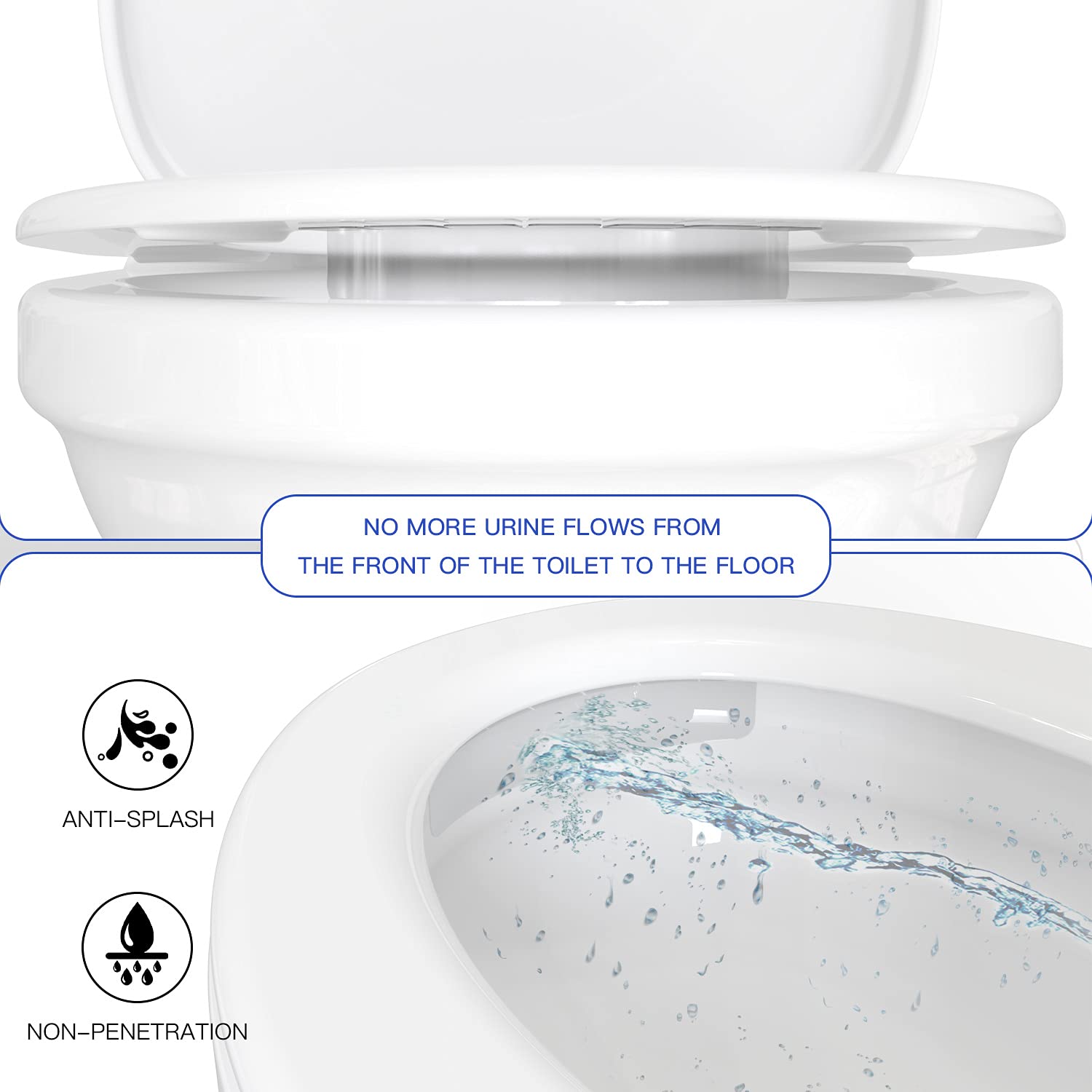- Keep the bathroom clean: No more urine flows from the front of the toilet to the floor. No more mopping the floor and cleaning up splashes frequently. Keeps the front of the toilet and the floor clean. Bathroom essential accessories.