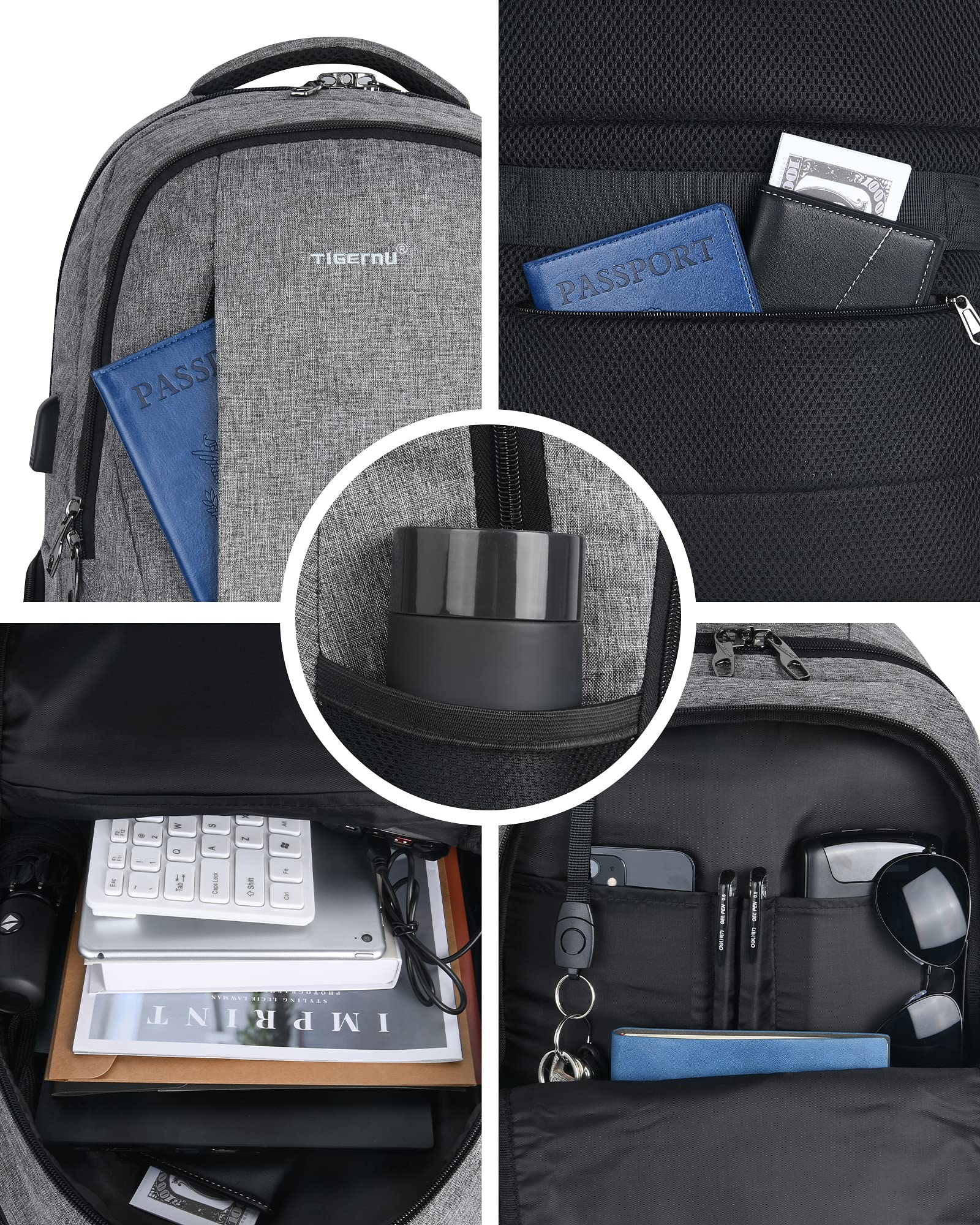 - Original Backpacks – Laptop Backpack, Business Slim Anti-theft Backpacks with USB Charging Port, Water Resistant College Bookbag with Laptop Compartment for Men Work, Fits 15.6 Inch Laptop and Notebook, Black by TIGERNU
