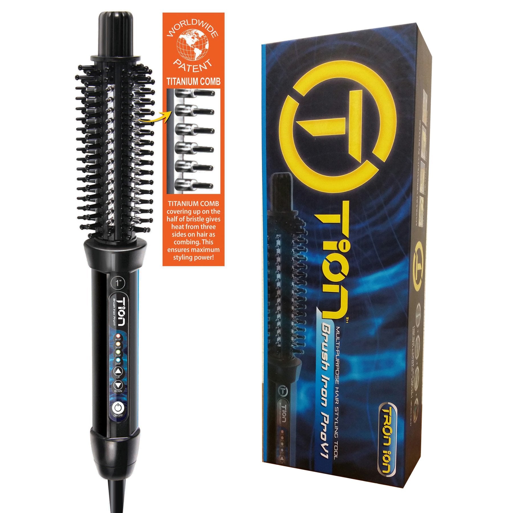 - MULTI STYLING TOOL: Brush Iron Pro V1 is a brush, straightener, and curler for quick and easy styling at your fingertips. The 2-piece ceramic heater is designed with titanium plated bristles for greater styling control and plate durability.