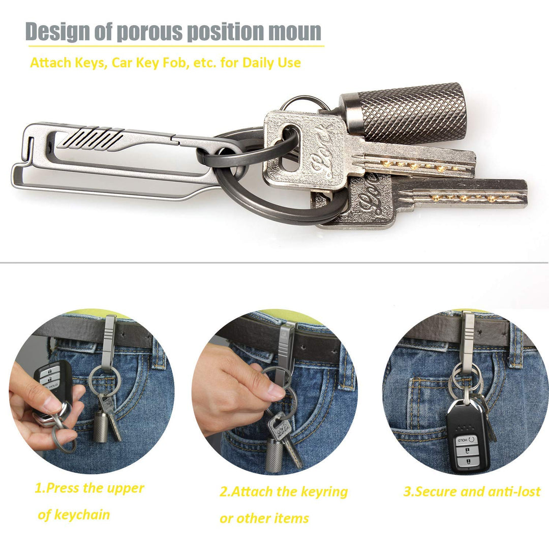 - What You Get:1xTitanium Keychain clip+ 1x Titanium key ring. If you can't open the white box, please put it in a warm place for a while before trying again.