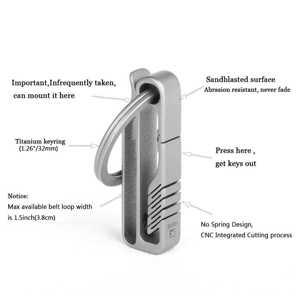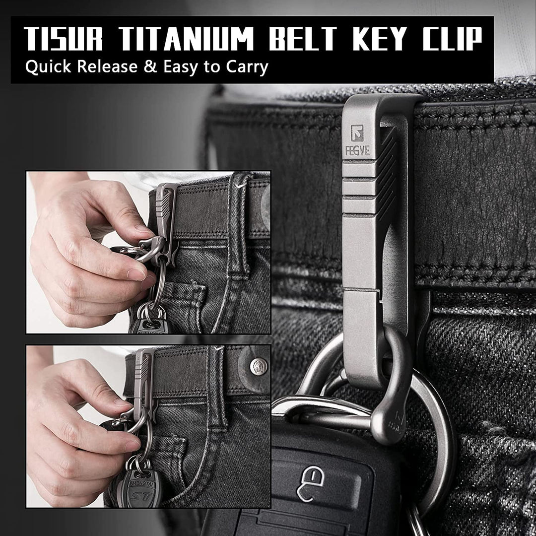 - Quick Release Detachable Keychain: This Belt clip can equip 4-6 keychain rings and fits your belt loop perfectly. Tilt up opening, safe enough and you can operate titanium key clip by just one hand smoothly and fast.