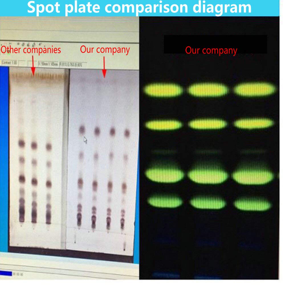 - High sensitivity: The spots are clear, no spreading and no trailing. Large separation capacity. It’s suitable for thin layer scanning quantitative analysis.
