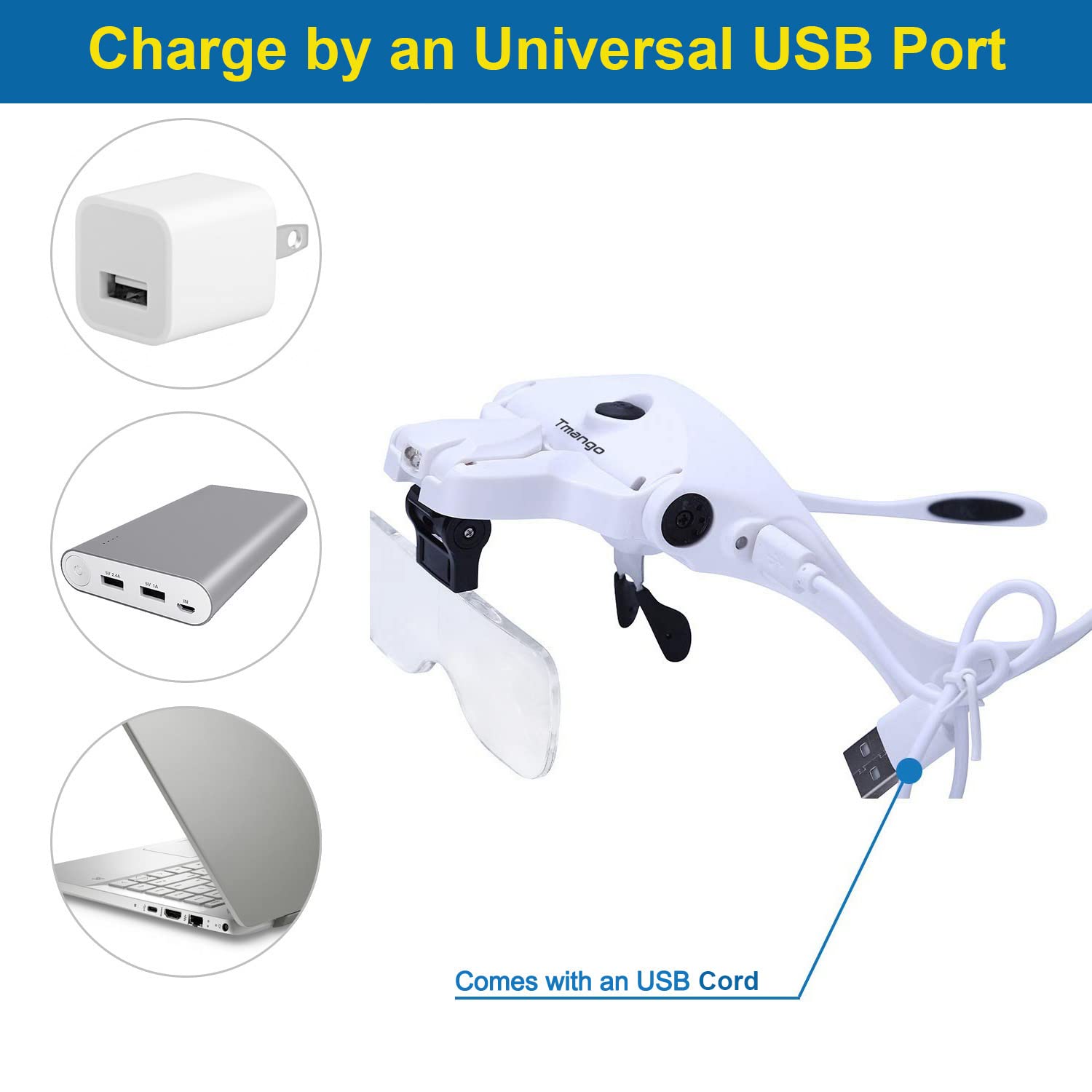 - Original Magnifiers – TMANGO Magnifying Glasses with Light for Close Work, Rechargeable and Hands Free Headband Magnifier, Optivisor for Jewelers, Eyelash, Watch Repair or Cross Stitch by Tmango