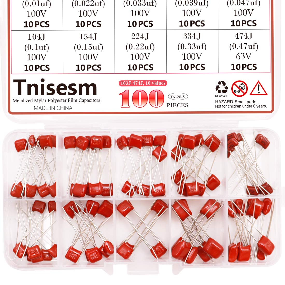 - Original Capacitors – 100 Pcs 10 Value Metalized Mylar Polyester Film Capacitors Assortment Kit 103nF - 474nF 100V and 63V in a Box Tn-20-5 by Tnisesm