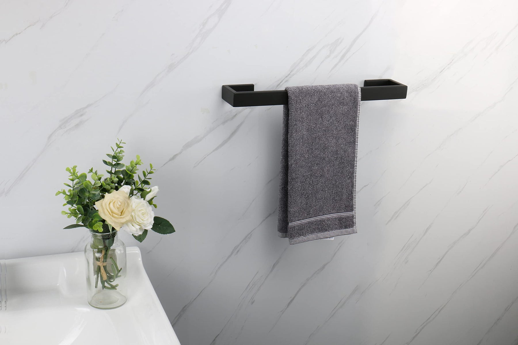 - Original Towel Bars – Bath Towel Rack - Square Base Thicken SUS304 Stainless Steel Towel Bar for Bathroom, Bathroom Bar Accessories Towel Rod Heavy Duty Wall Mounted Towel Holder (Matte Black, 12 Inch) by TocTen