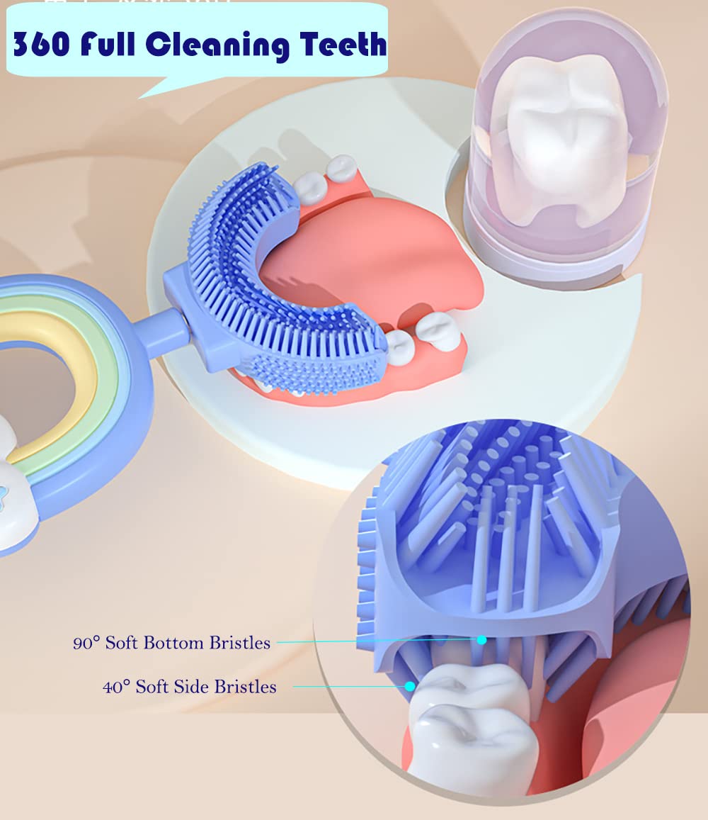- FUN&CUTE TOOTHBRUSHThe cute rainbow and doughnut patterns, and the creative U-shaped toothbrush make it easy and fun for children to brush their teeth. This helps your child be willing to brush their teeth longer and even develop healthy brushing habits, say goodbye to tooth decay.