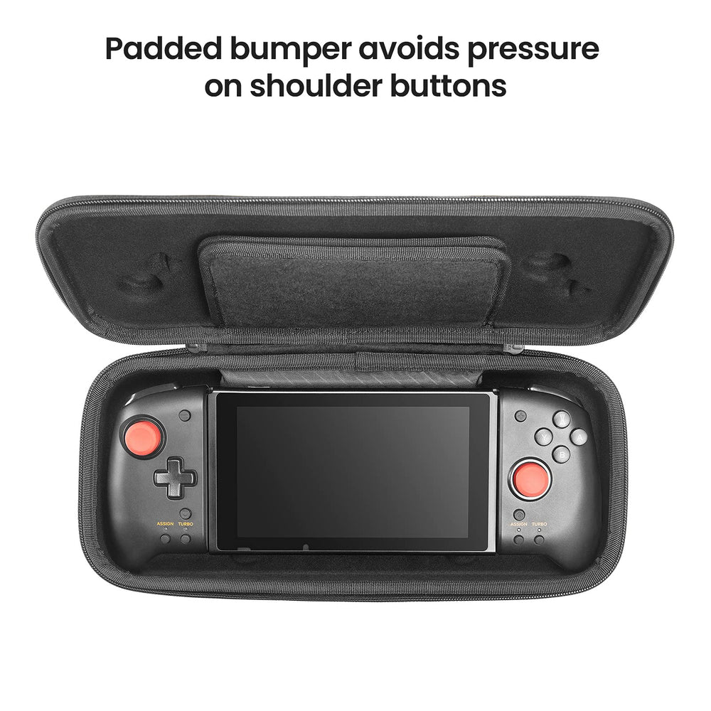 - Comprehensive protection: The EVA hard shell has raised areas to prevent pressure from being applied directly to the analog sticks and buttons; a built-in padded buffer avoids compression on shoulder buttons