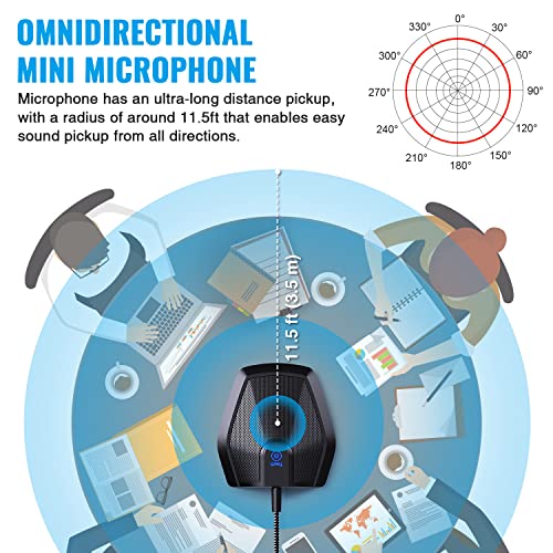 - Omnidirectional Microphone - It is not a Speaker or Speakerphone, it is a condenser microphone. The microphone has an omnidirectional pickup pattern with a pickup distance of 11.5 ft, making it easy to capture the most subtle sounds from 360° directions and transmit the sound more loud and clear. Participants can hear each other without raising their voices.
