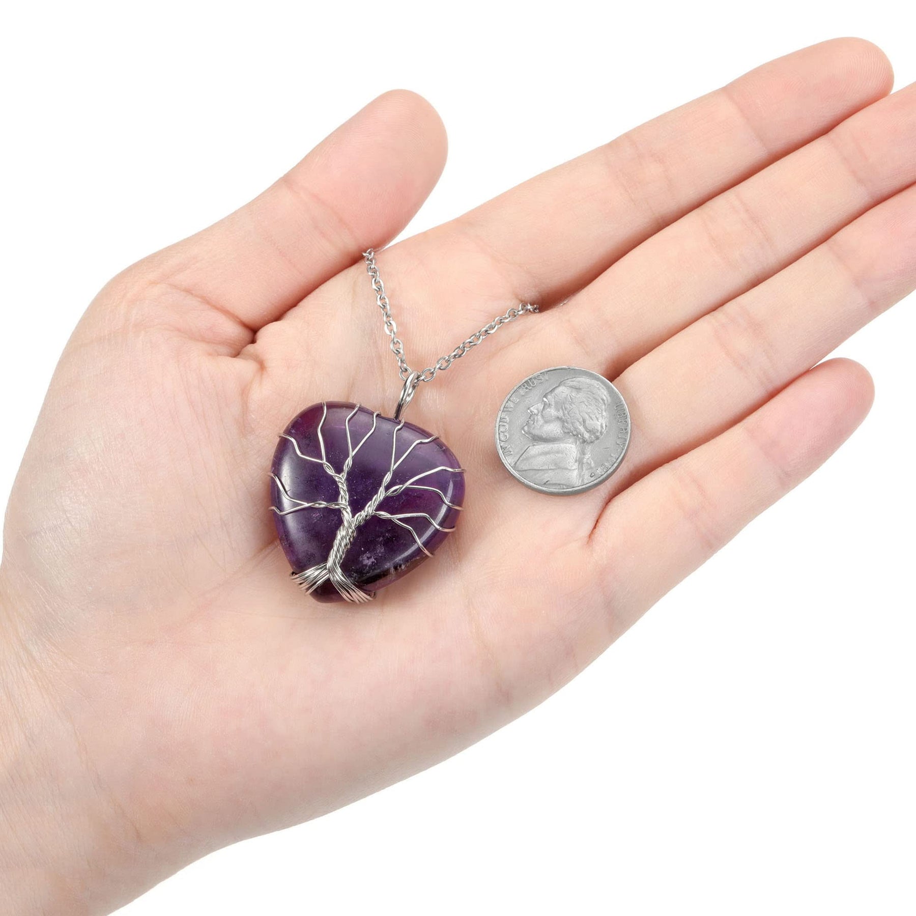 - Original Pendant Necklaces – Natural Green Aventurine Healing Crystals Necklace Silver Tree Of Life Wire Wrapped Heart Shape Stone Pendant for Womens Girls Ladies by Top Plaza