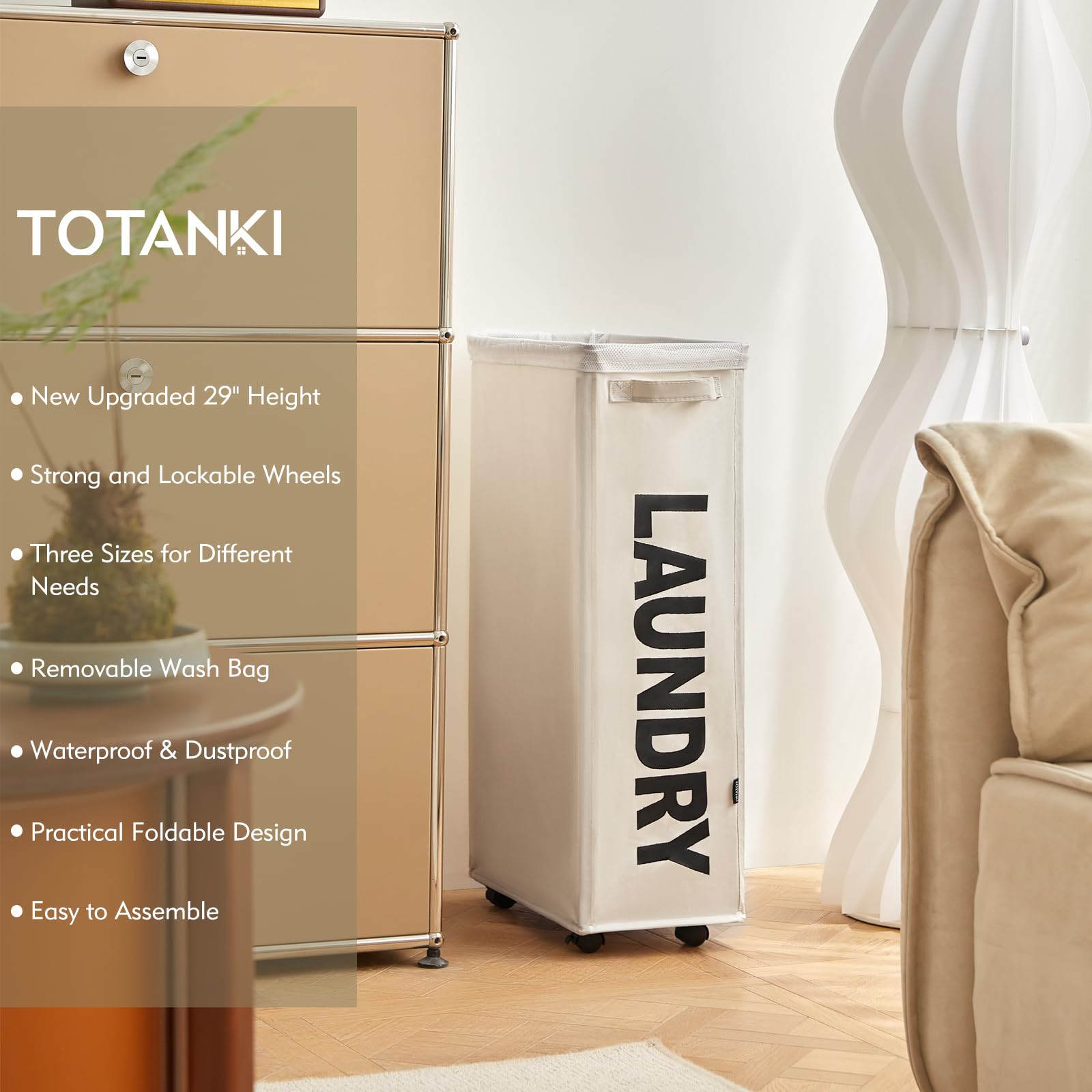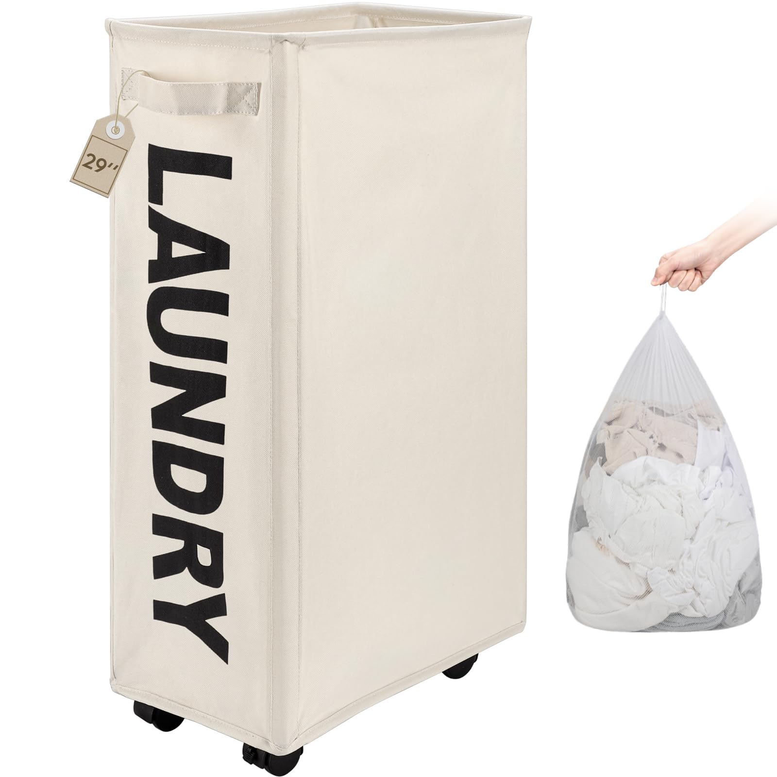 - Original Laundry Baskets – 27 Large Slim Rolling Laundry Basket on Wheels with Removable Bag, Foldable Laundry Hamper with Handle, Collapsible Laundry Sorter and Organizer, Tall Storage Basket Bin (Blue) by TOTANKI