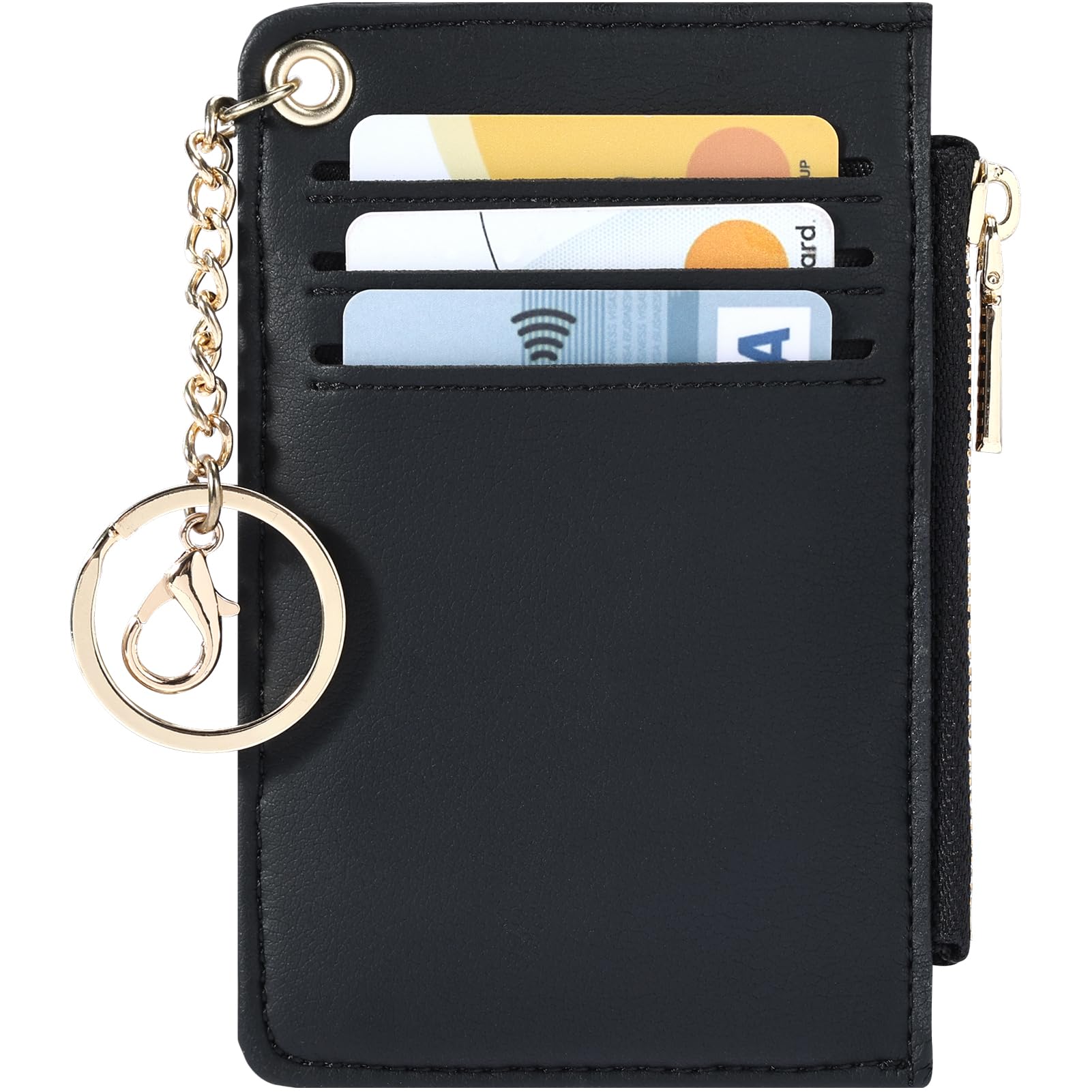 - Zipper Card Case : The keychain wallet is made of high-quality faux leather; You can easily attach your keys to this slim wallet through this gold color heavy duty keychain