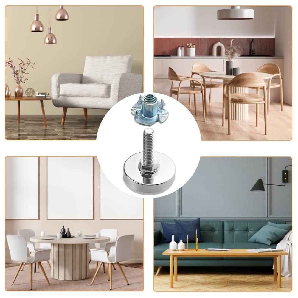 - Package Content: You will receive 20pcs M8 adjustable furniture leveling feet and 20pcs metal T-nuts, and sufficient quantities will meet your installation and replacement needs.