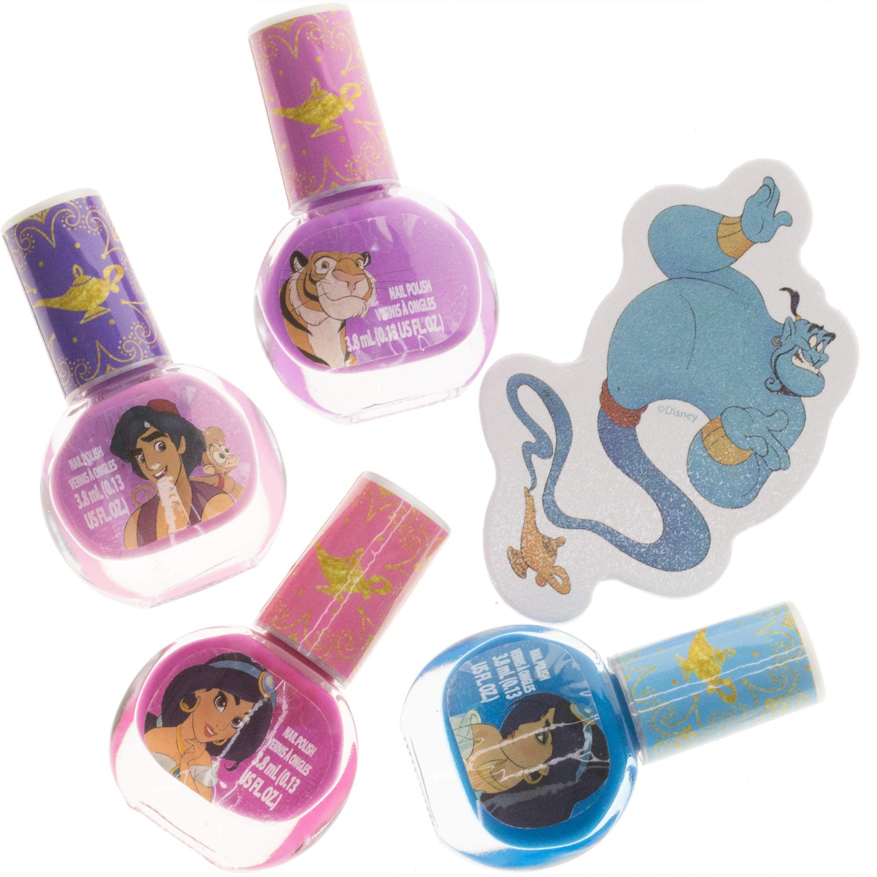 - Original Nail Polish – Disney Aladdin Non-Toxic Peel-Off Nail Polish Set with Nail File and Glitter Bag for Girls, Opaque Colors, Ages 3+ (4 Pack), 5 Count by Townley Girl