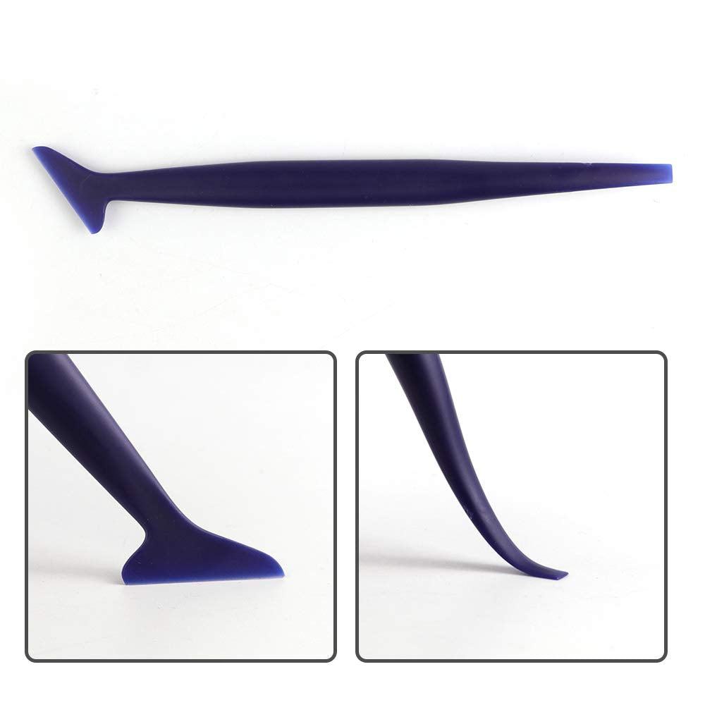 - The blue squeegee is ideal for film application in narrow, concave parts of the car,it is the soft.For the yellow corner squeegee ,black squeegee and mini pink squeegee, they could be used widly on the corners and the place which normal squeegee is hard to reach. For the orange double-sided scraper,one side plastic, one side metal, according to your needs to remove stubborn glue or small dirty residue.