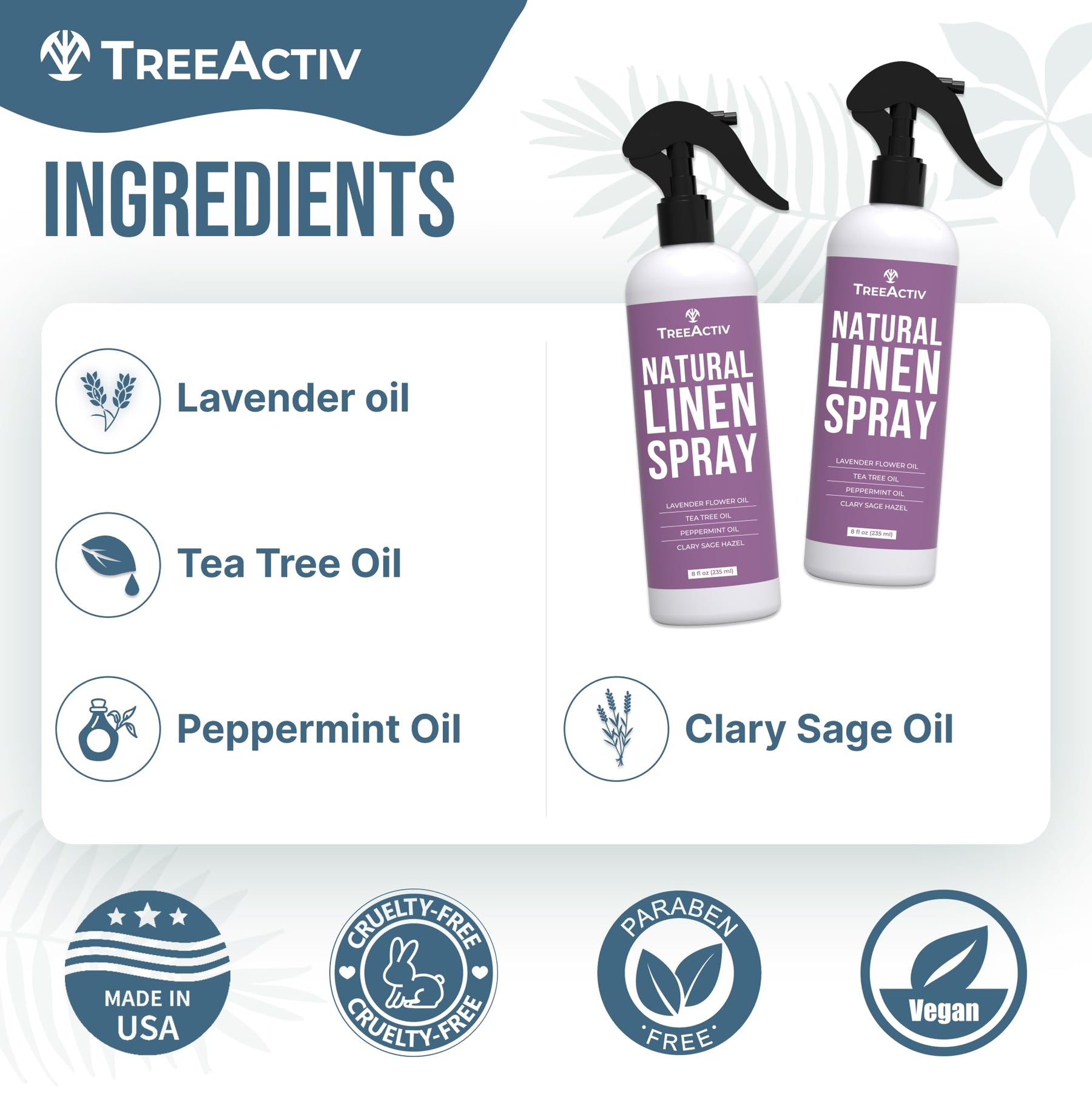 - Original Spray – Natural Linen Spray, 8 fl oz, Lavender Spray for Sleep, Linen Spray for Beddings, Pillows, and Sheets, Lavender Bed Spray with Lavender and Tea Tree, Pillow Mist Freshener, 2000+ Sprays by TreeActiv