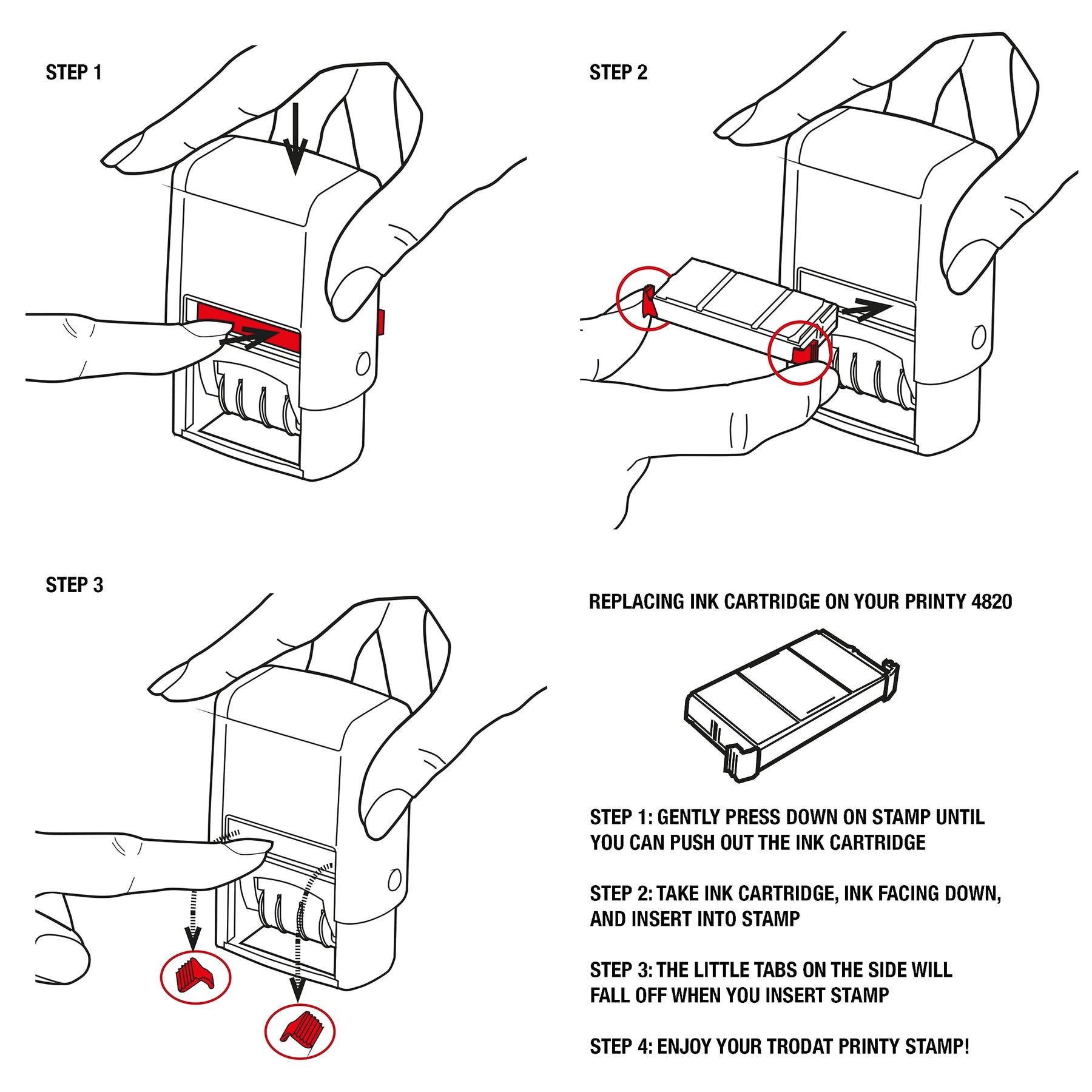 - The simple way to accurately date documents: Stop hand writing the date on documents, and start STAMPING! The Trodat 4820 Printy is an easy to use date stamper with adjustable numbers and text for up to 12 consecutive years – US format in MMM-DD-YYYY. Each 4820 is guaranteed to have at least 10 new years on the bands.