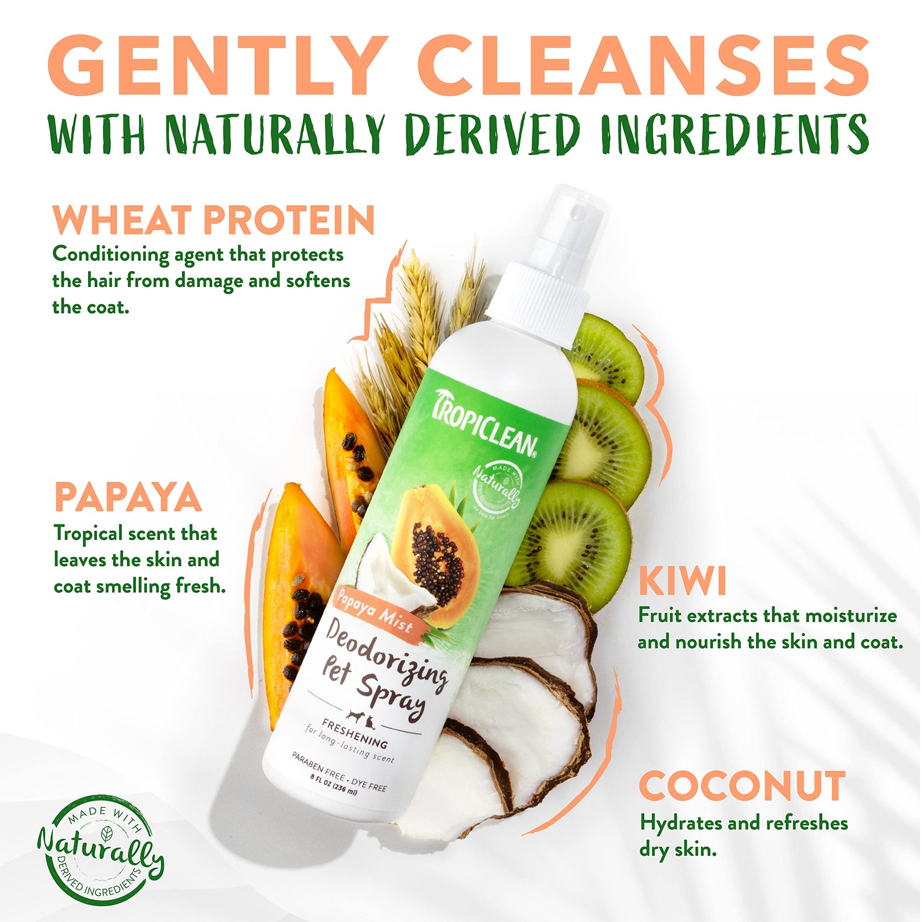 - Original Deodorizers – Dog Perfume, Long Lasting Papaya Cologne, Deodorizing Spray for Smelly Dogs, After Bath Detangling Spray with Vitamin E, Safe for Cats, 8oz. by TropiClean