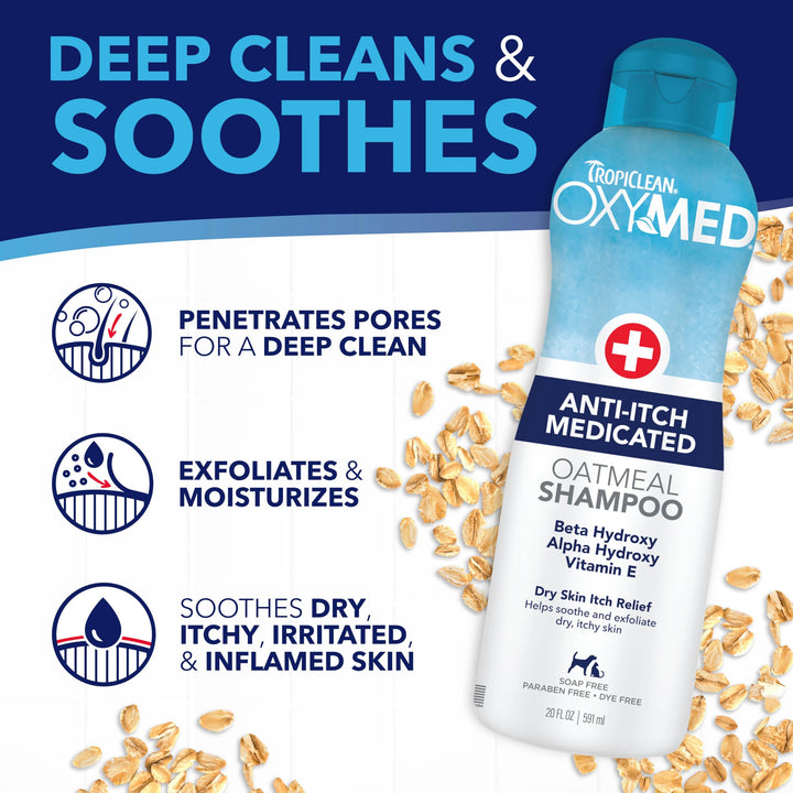 - Original Shampoos – OxyMed Dog Shampoo for Allergies and Itching , Medicated Oatmeal Shampoo for Dry Itchy Skin, Seborrhea, & Hot Spots, Cat Safe, 20oz. by TropiClean