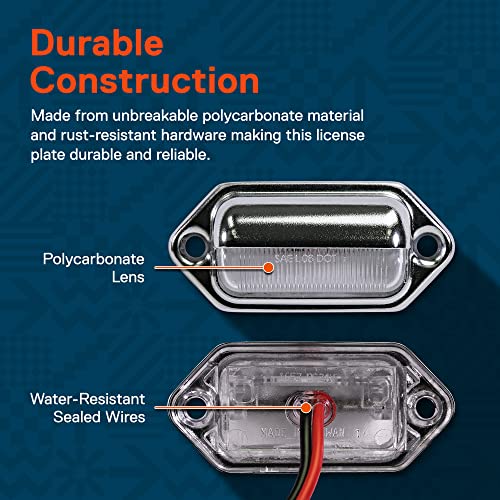 - DURABLE NAD RELIABLE - By using high-quality components for this license plate light, you get a reliable which is both durable and reliable. You also get a two-year warranty.