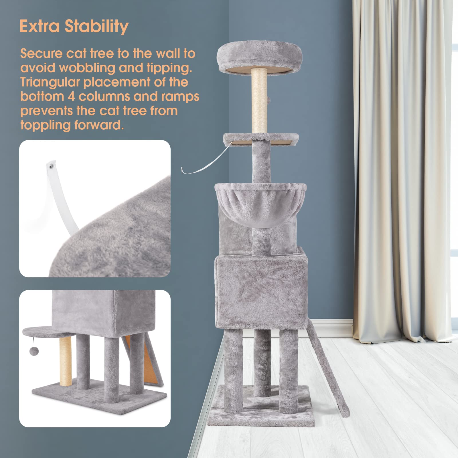 - Original Trees – 59 Multi-Level Cat Tree Cat Tower for Indoor Cats, Tall Plush Rest Area with Spacious Cat Condos, Scratching Posts with Hammock Basket and Hanging Toy, Cat Furniture with House for Rest & Fun by TSCOMON