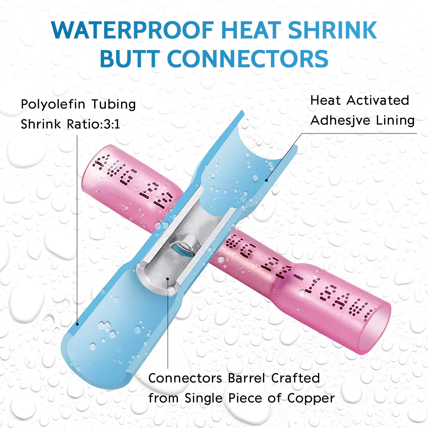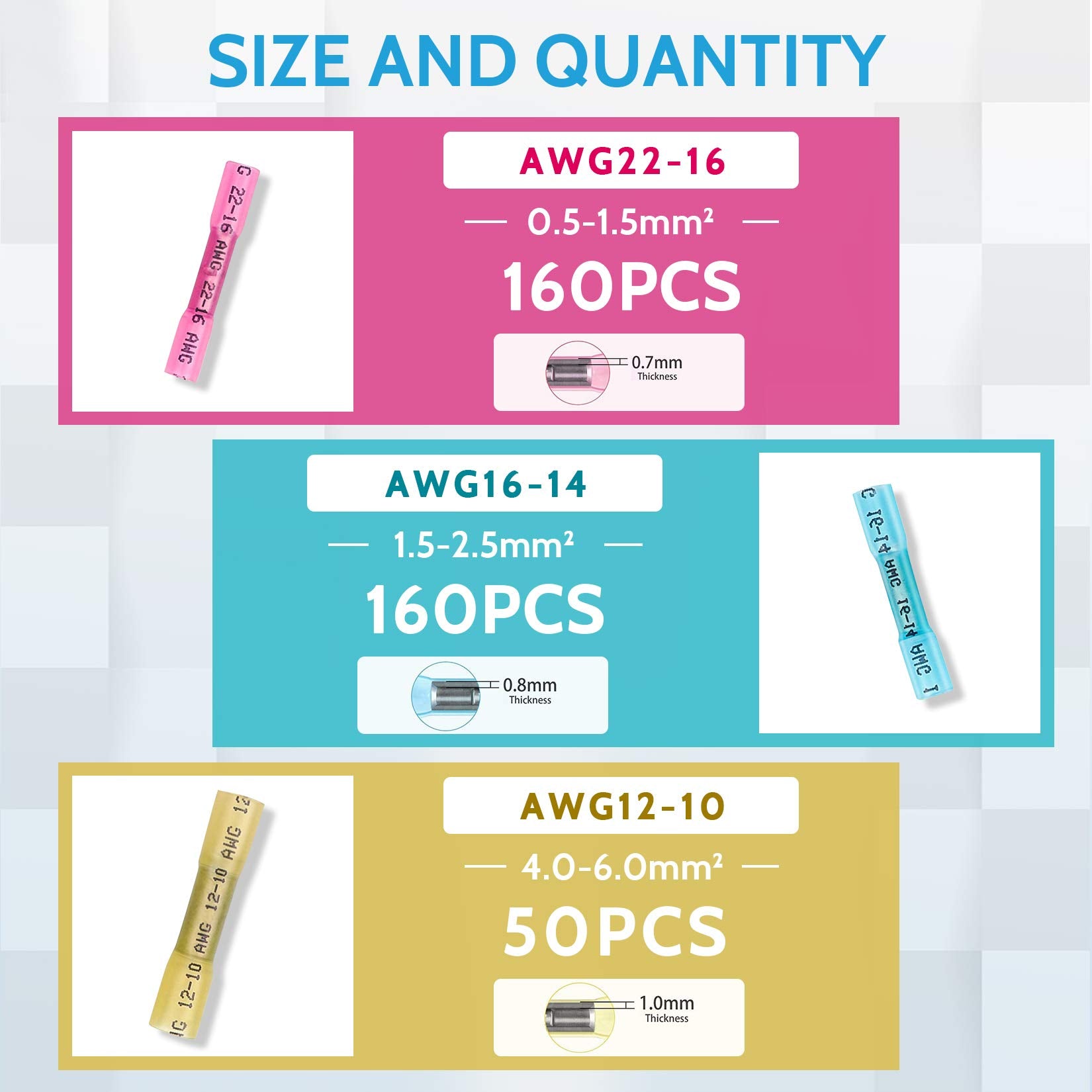 - Original Butt – Tsinglax 370pcs Heat Shrink Butt Connectors Kit,Insulated Waterproof Electrical Marine Automotive Wire Crimp Terminals, Butt Splice (3 Colors / 3 Sizes) by Yikki