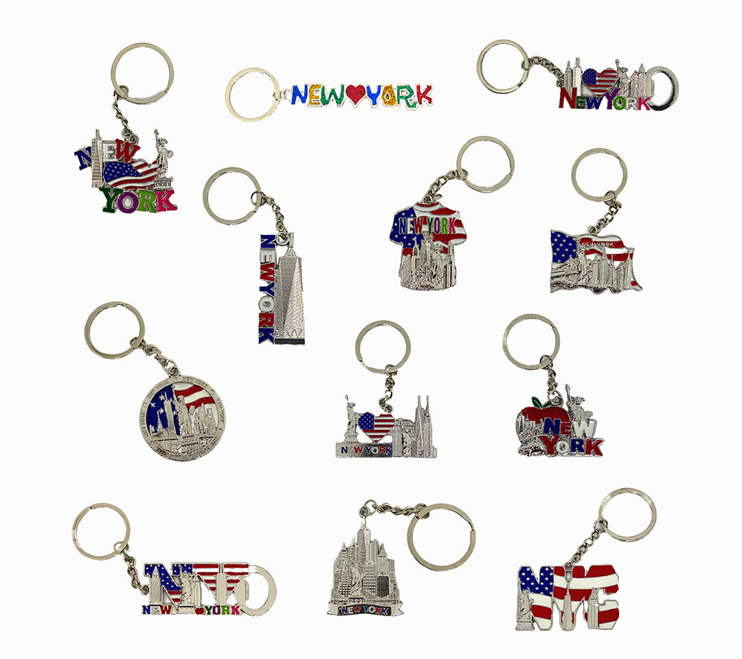 - Original Keychains – 12 Pack New York NYC Metal Keychain Ring Bundle Souvenir Collection, Gift Set Include Empire State, Freedom Tower, Statue Of Liberty, USA Flag, And More by TSY TOOL