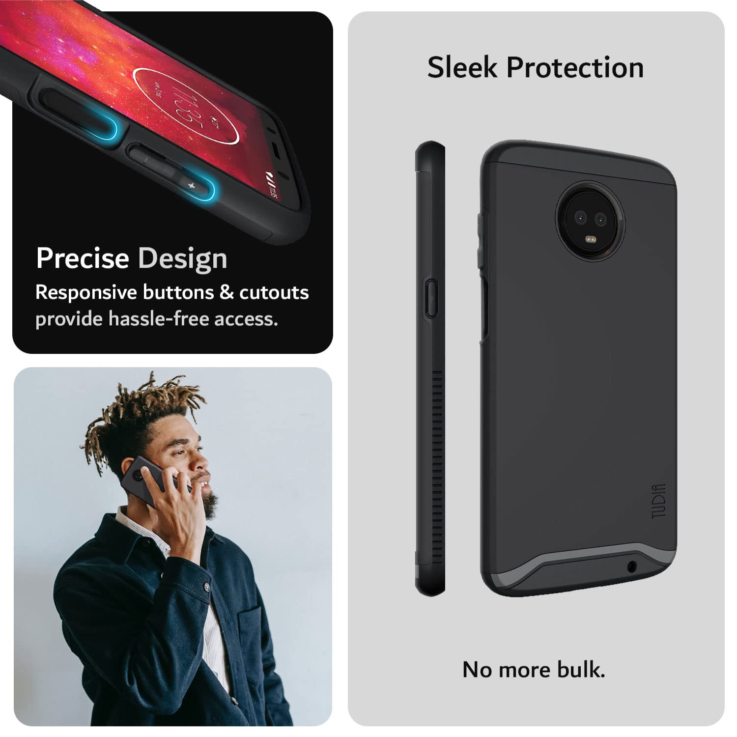 - Original Basic Cases – DualShield Designed for Moto Z3 Phone Case/Moto Z3 Play Case, [Merge] Shockproof Heavy Duty Military Grade Dual Layer Hard Slim Protective Case Cover - Matte Black by TUDIA