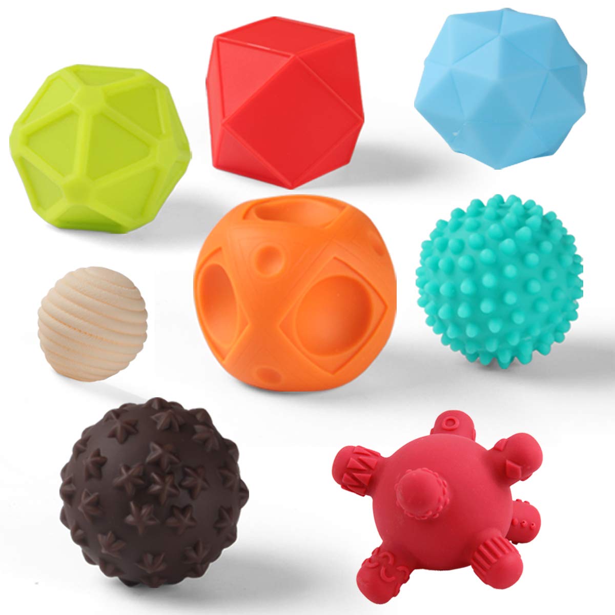 - [Different Textured Shape]--These sensory toys have 8 different touching feeling and shapes, a variety of texture to stimulate the baby's skin for tactile exploration and sensory development.