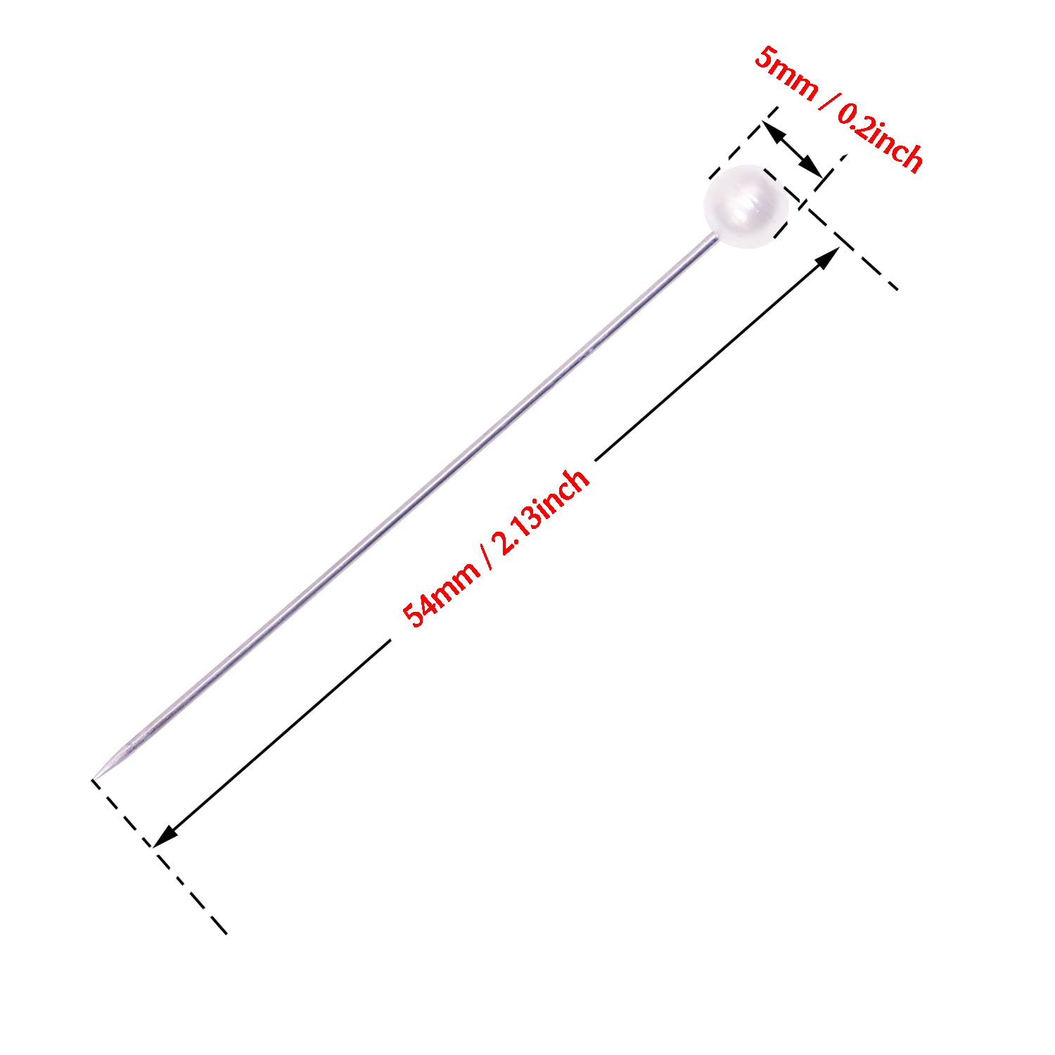 - Size: Faux pearl ball head diameter: 5mm / 0.2inch. Pin Total Length: 54mm / 2.13inch.