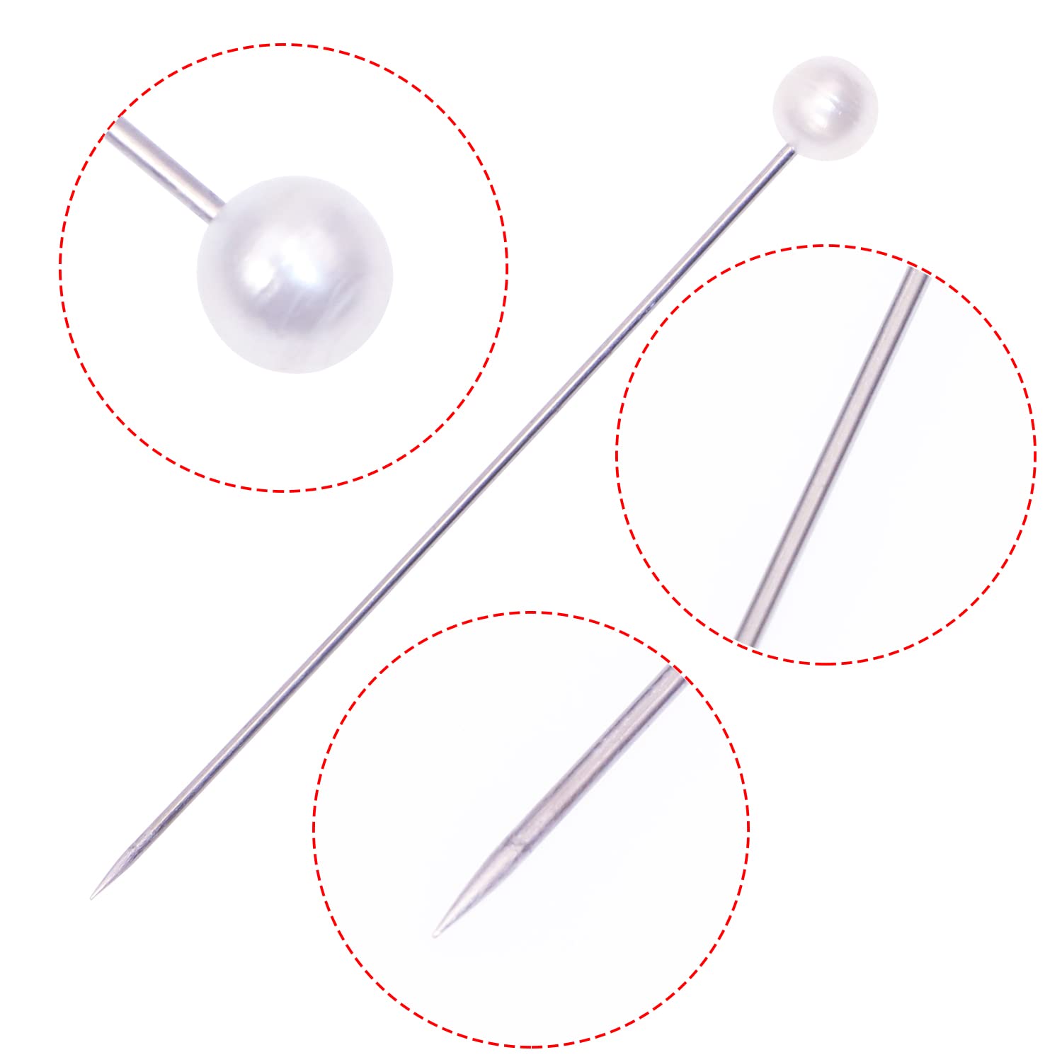 - These faux pearl head sewing pins are made of plastic head and stainless steel. Cute and functional, sharp and easy to hold, cute and sturdy, pointed end make it easy to slide into flowers and fabrics.