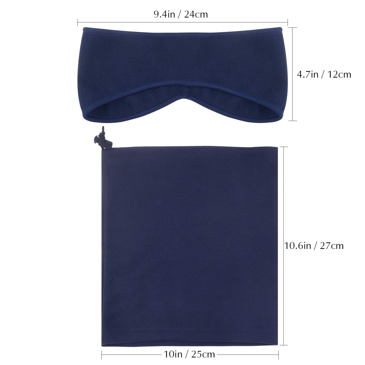 - Size: the ear warmer headband about 9.4in/24cm in length, can be stretched to 11in/28cm in length; the neck gaiter about 10.6in/27cm in length, the circumference is approx. 20in/51cm, proper size and suits most men and women