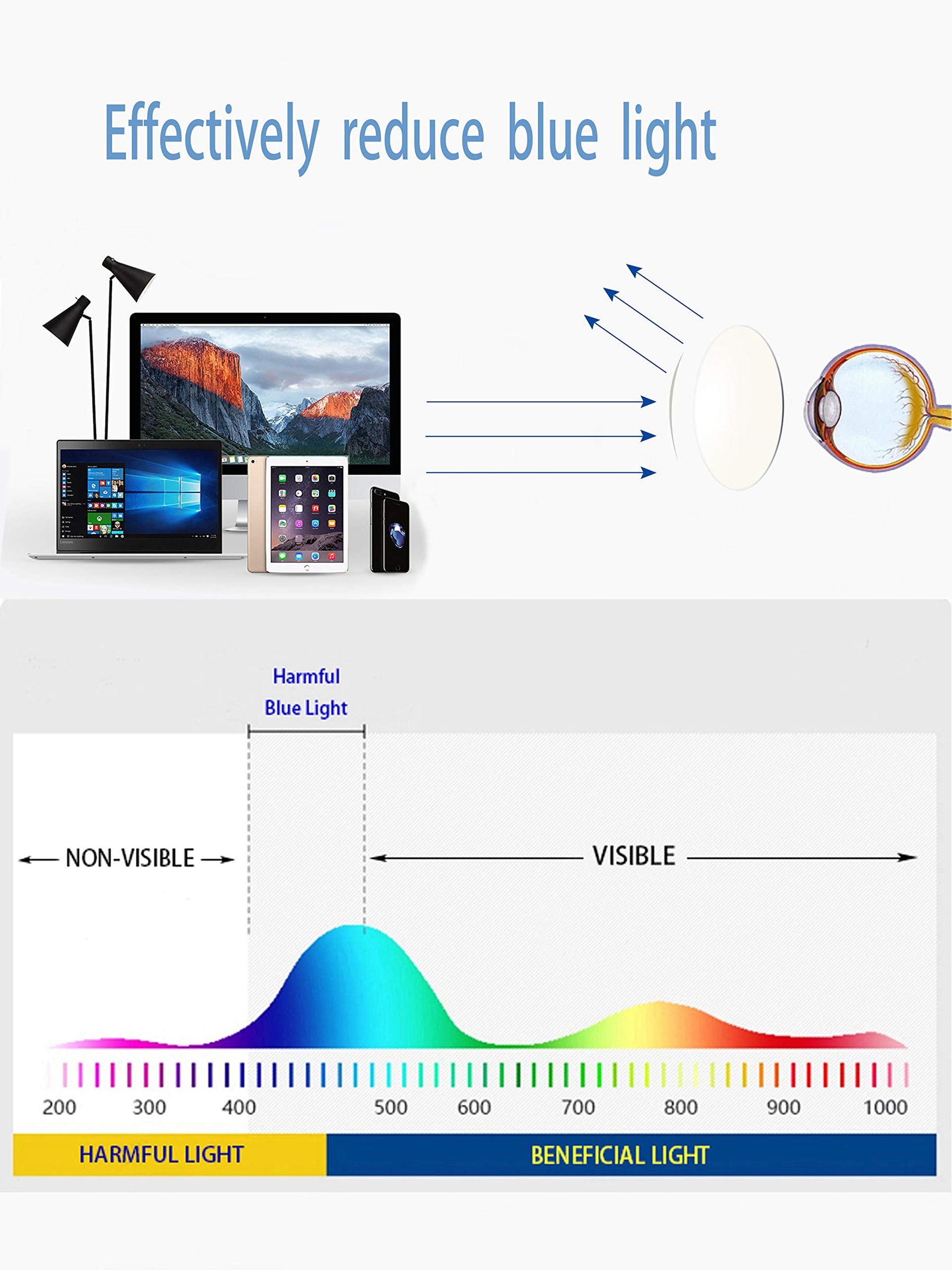 - Block blue light without color distortion, 9-layer anti-reflective coating to reflect blue light, reducing eye strain over extended time of use. High light transmittance with no noticeable yellow tint to prevent color distortion, minimize glare emitted from digital screens.