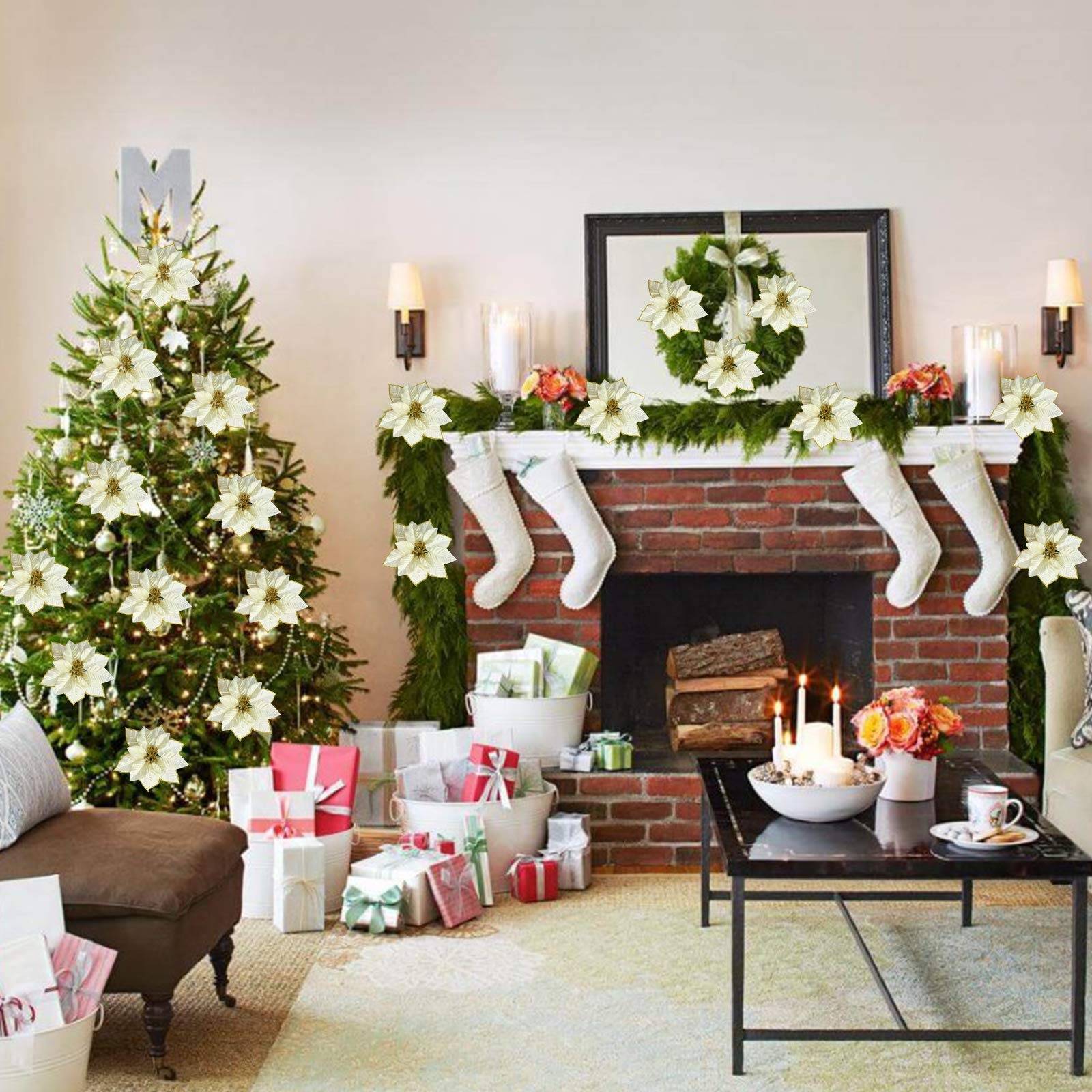 - Christmas DecorationsGlitter poinsettias can be used for Christmas tree decorations and ornaments, Christmas wreath or garland, Table centerpieces, wedding decorations, room decorations, floral display, bouquets, flower centerpieces,etc.