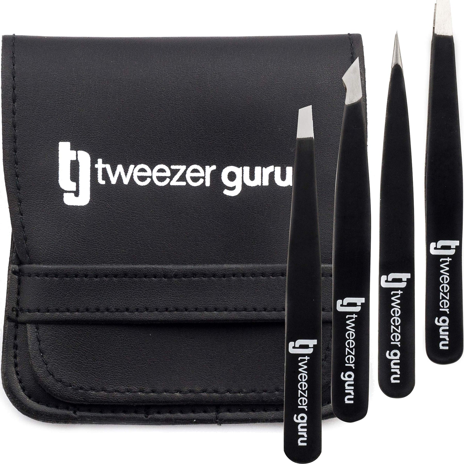 - Original Tweezers – Tweezer Guru Eyebrow Tweezer Set (4-Piece) for Women & Men - Professional Slant and Pointed Tweezers Set with Case - Precision Tweezers Kit for Facial Hair, Splinter and Ingrown Hair Removal by TWEEZER GURU